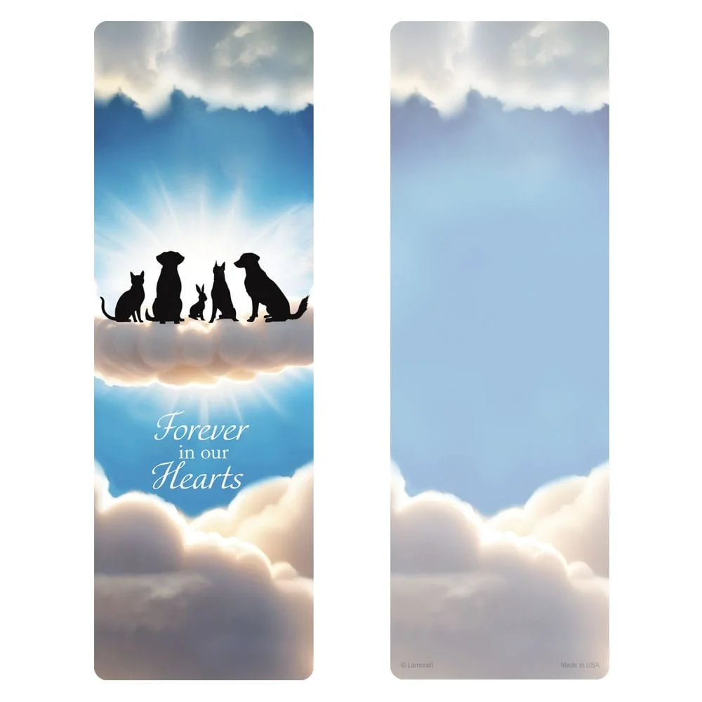 Pop-out Laminated Bookmark Keepsake, plus room for a handwritten personal message or paw print